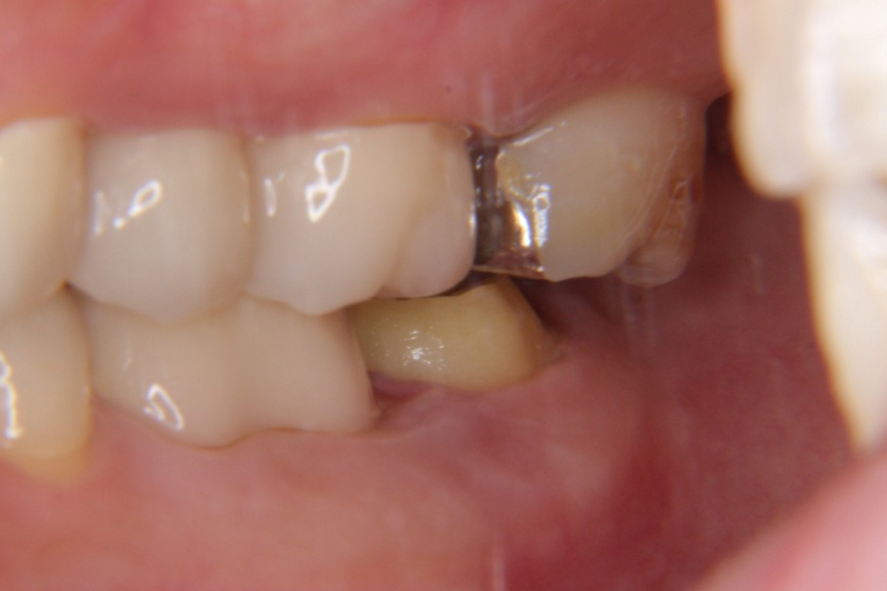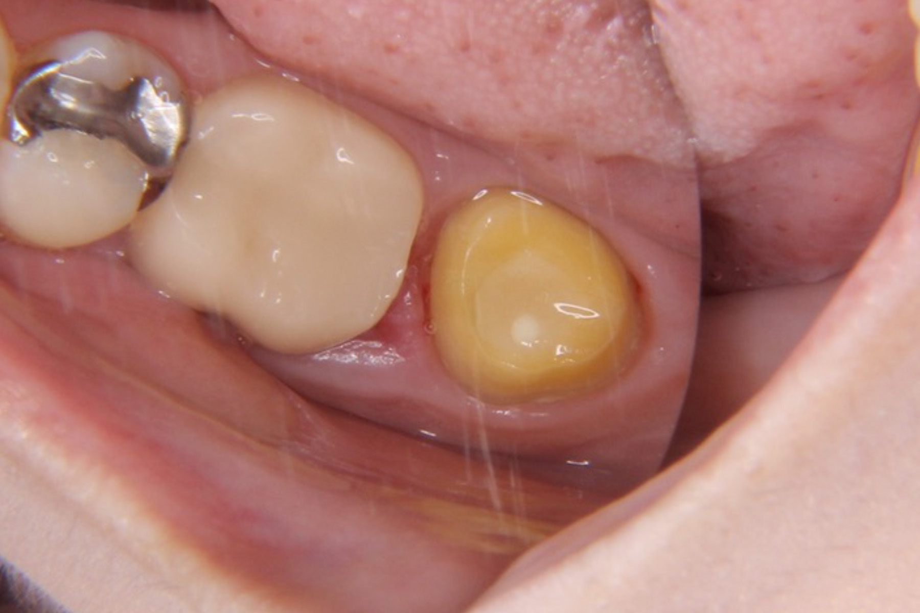 金属の見た目が気になるとのことだったので、白い材料で治療することとなりました。