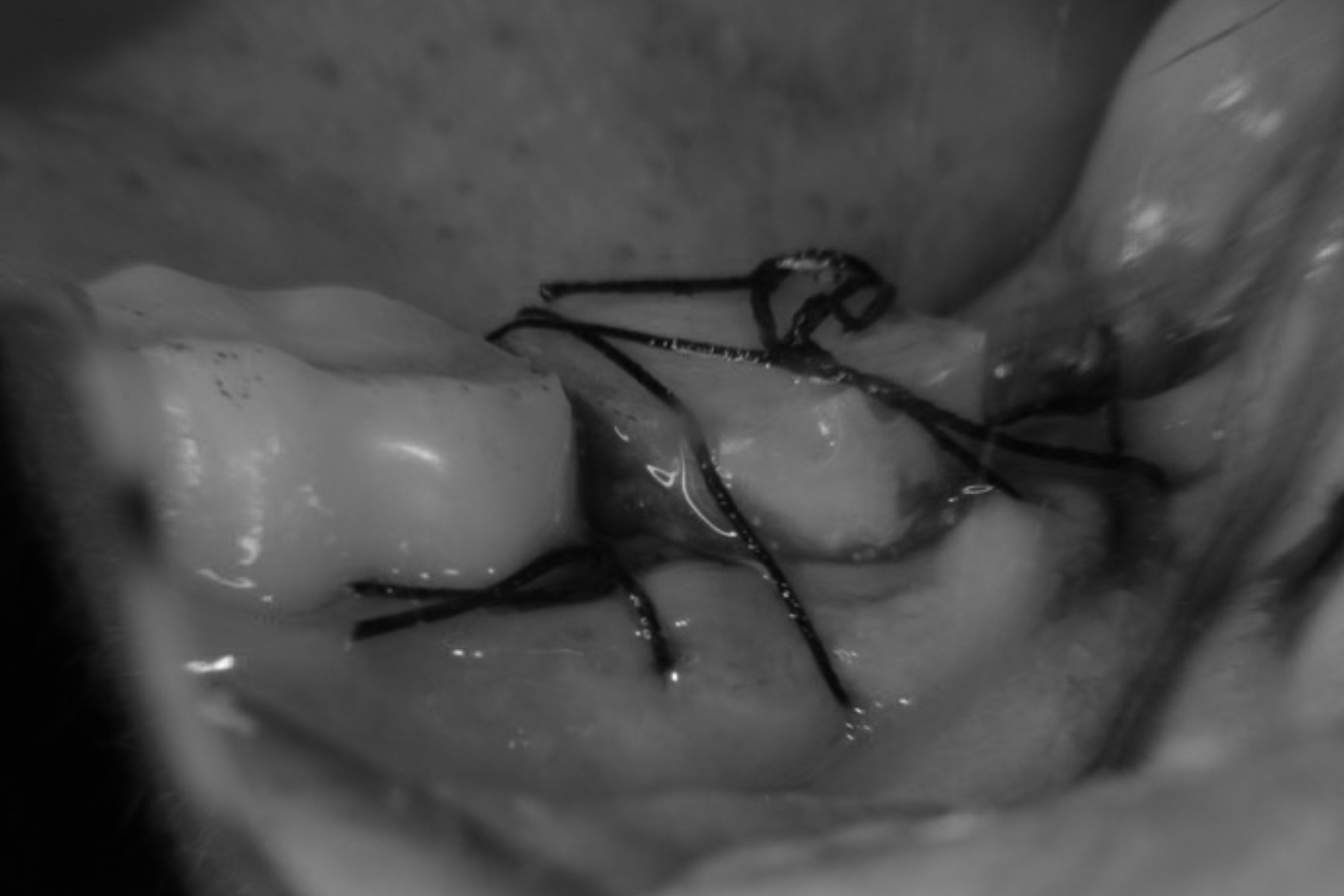 | 治療内容 | 右下7番は歯根破折により抜歯が推奨された。親知らずの状態も良かった為抜歯と同時に歯牙移植手術を実施し、実質的に機能歯の喪失を防いだ。 |